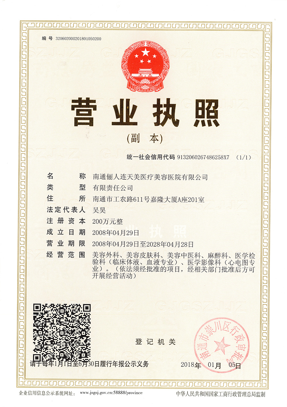南通儷人連天美醫(yī)療美容醫(yī)院是與著名的醫(yī)療美容集團合作建立的醫(yī)院,醫(yī)院提供高品質(zhì)的醫(yī)療美容服務。2008年,南通儷人連天美醫(yī)療美容醫(yī)院落戶南通,成為由南通衛(wèi)生局審批的專業(yè)醫(yī)療美容醫(yī)院。南通儷人連天美醫(yī)療美容醫(yī)院,特別設有專業(yè)的整形美容科、皮膚美容科和微創(chuàng)美容科三大科室,致力于為廣大求美者提供全方位的醫(yī)療美容服務。南通儷人連天美醫(yī)療美容醫(yī)院為求美者建立個人終生美麗檔案,一對一進行細致服務。 11年來,南通儷人連天美醫(yī)療美容醫(yī)院,不斷引進先進設備,不斷完善醫(yī)美技術,一批優(yōu)秀、專業(yè)而穩(wěn)定的醫(yī)生團隊,為無數(shù)求美者鑄就美麗夢想。